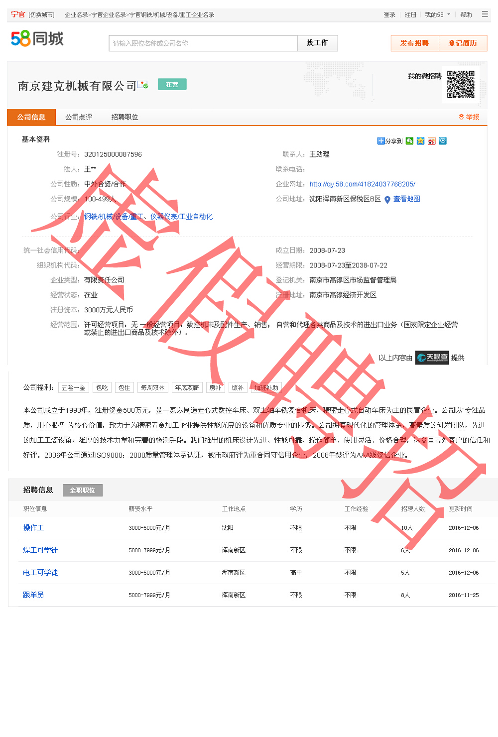 近期我司接到眾多沈陽地區的應聘電話,經調查了解,有非法人員冒充我司在58同城注冊帳號并且發布沈陽地區招聘廣告?,F我司已與58同城溝通刪除該系列虛假信息中,請廣大應聘者切勿上當受騙,以免造成不必要的損失。如已經發生不良情況,請及時報警并與58客服溝通。由此帶來…